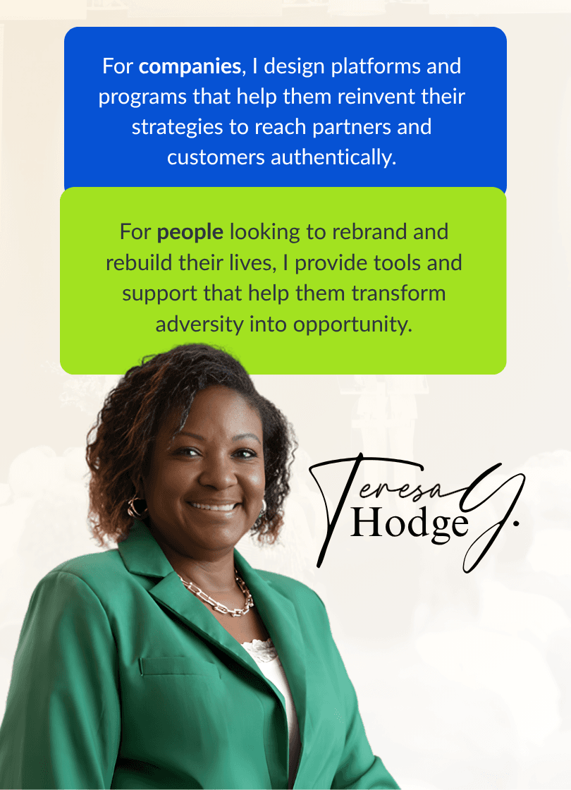 Teresa Hodge is a nationally recognized leader focused on justice reform, equity, and systems change. Her work spans advocacy, policy, leadership development, and advisory roles supporting organizations and communities working toward more just outcomes.