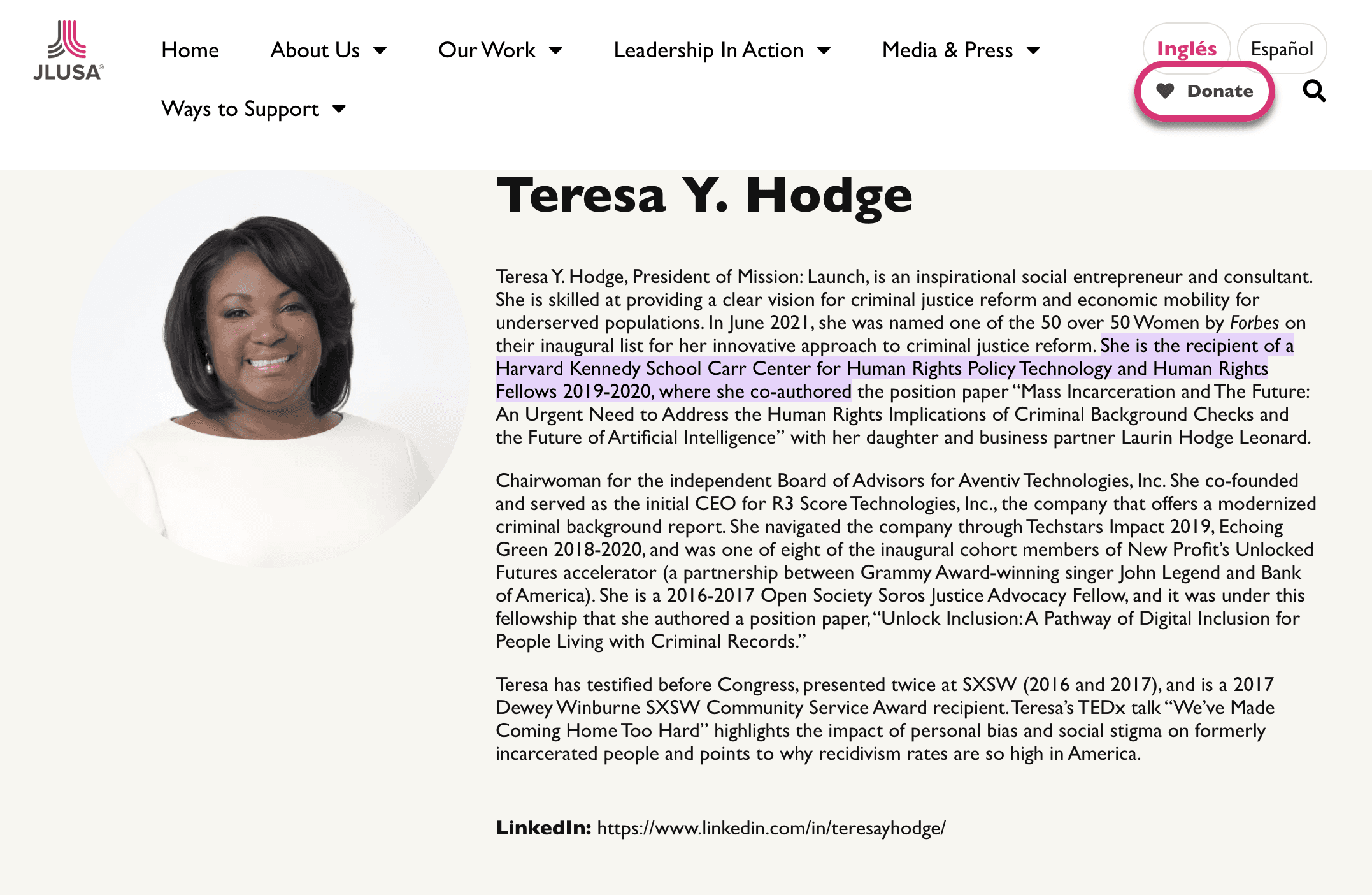 Teresa Hodge is a nationally recognized leader focused on justice reform, equity, and systems change. Her work spans advocacy, policy, leadership development, and advisory roles supporting organizations and communities working toward more just outcomes.